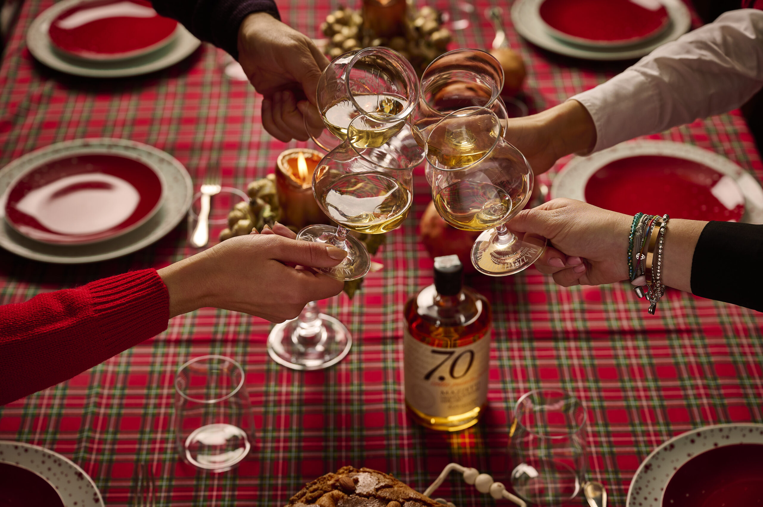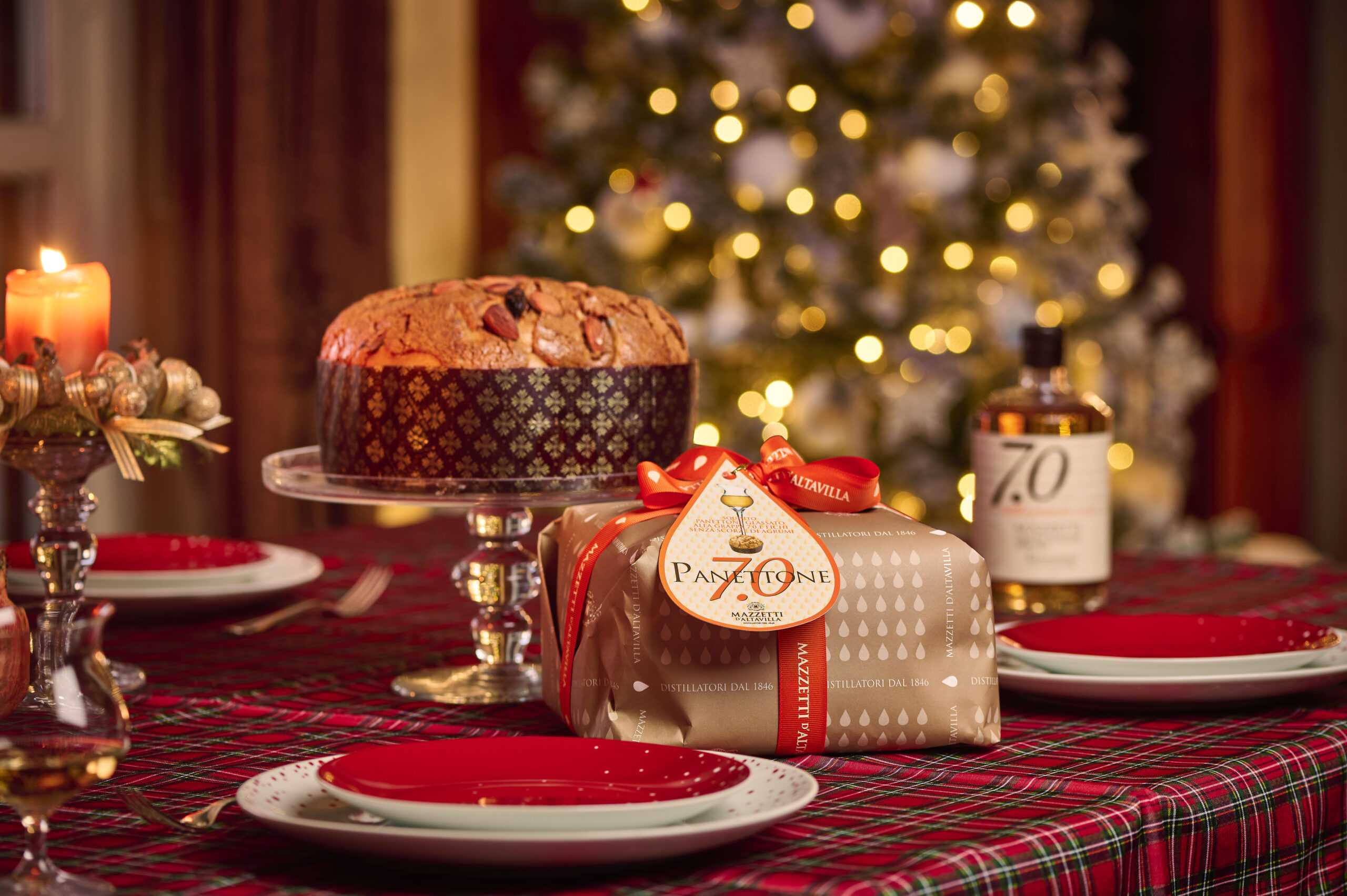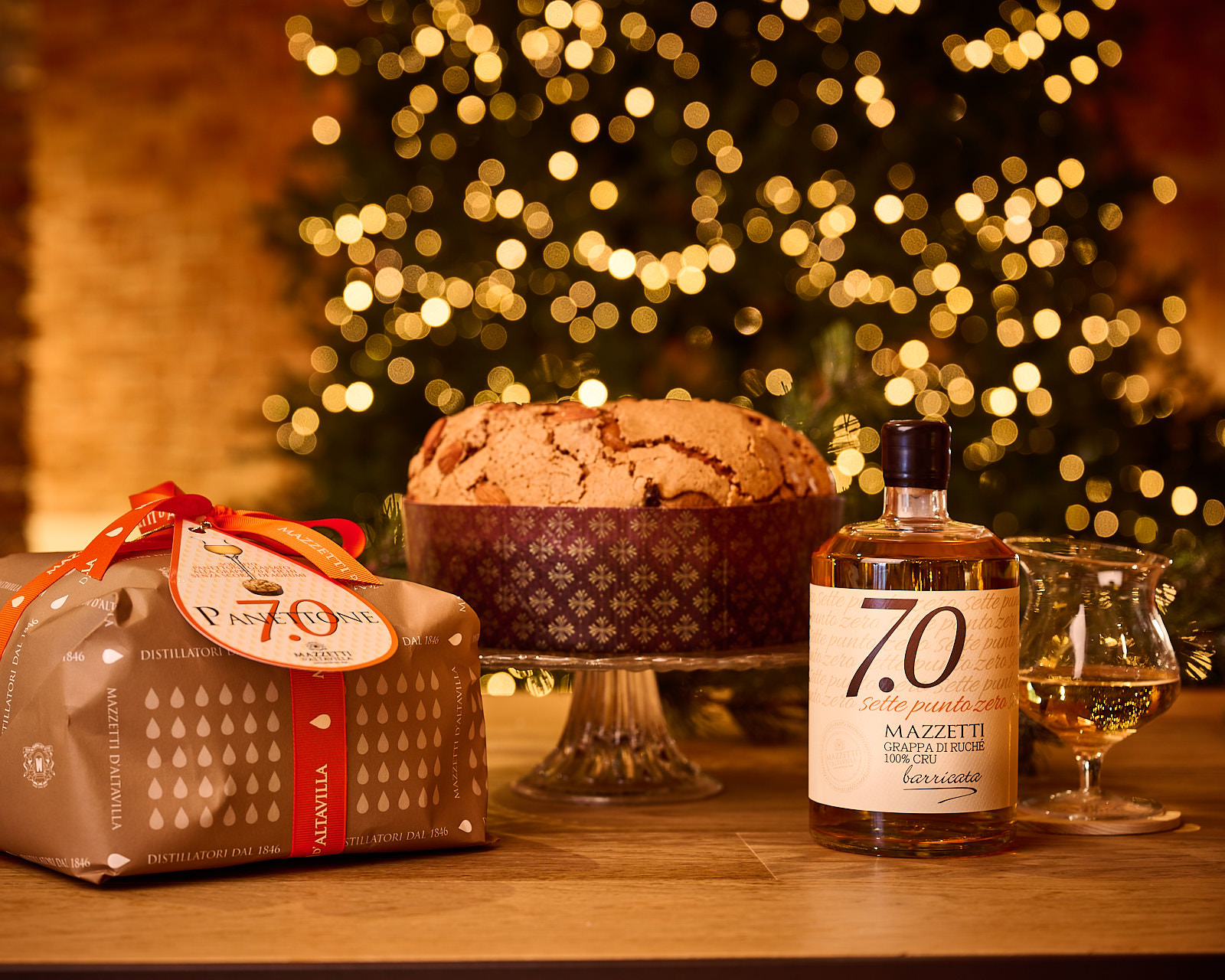 In questo speciale panettone, realizzato secondo la ricetta piemontese senza canditi dalla storica casa cuneese Albertengo, le uvette vengono fatte rivivere nella Grappa Barricata 7.0 per un abbinamento sorprendente e riuscito.